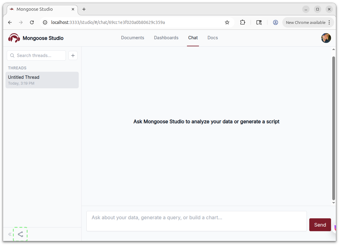 The share chat button has moved from its previous position in the top-right corner of the chat area to the sidebar footer. This keeps the chat area cleaner and groups the share action alongside other sidebar controls, ensuring that it doesn't hover over any chat messages.